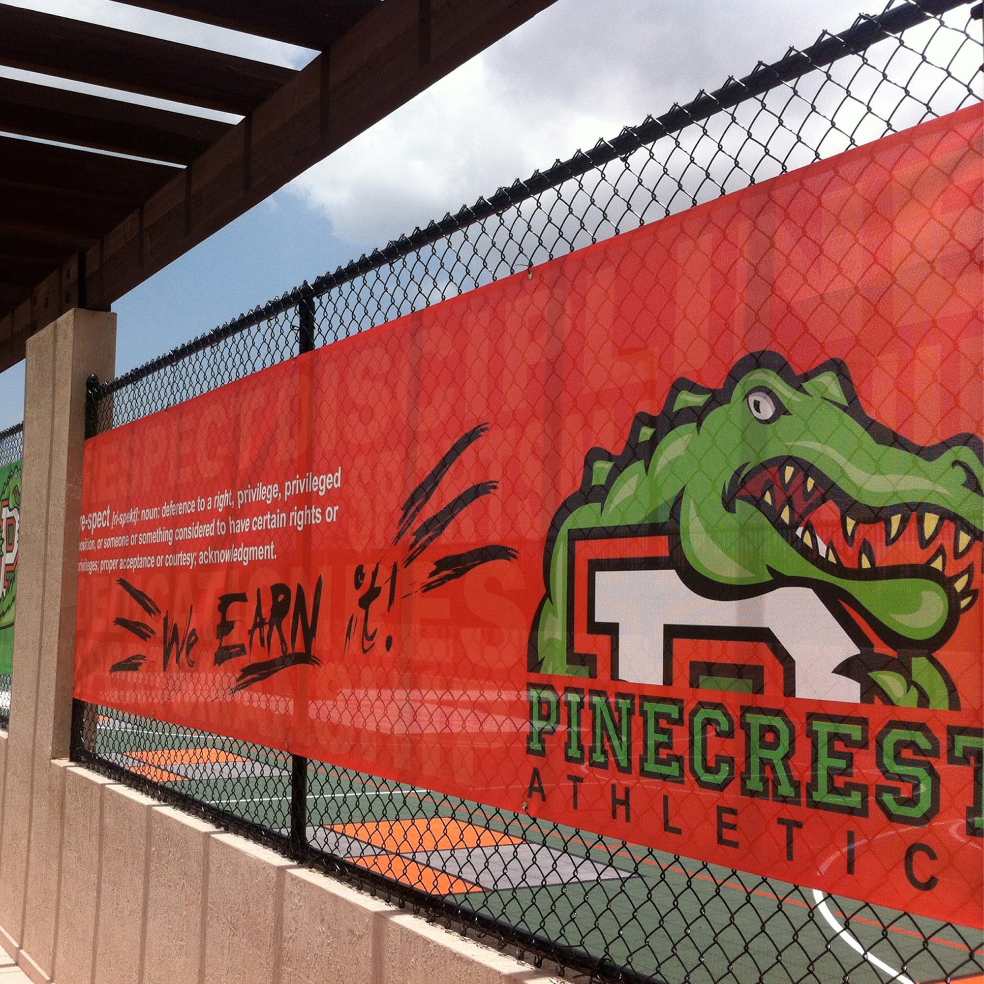 Pancartas de malla de marca, pancartas de mástil, banderas de plumas, pancartas en forma de A, vinilos personalizados, carteles y más.